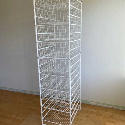 Myydään laadukas Elfa -säilytysjärjestelmän kokonaisuus.