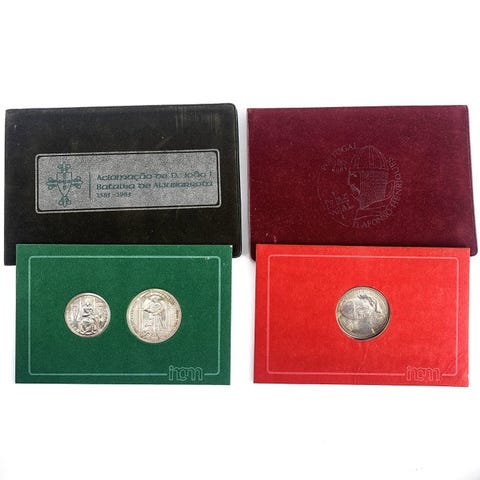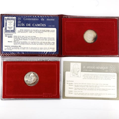 Portugali2 Hopeiset muistomitalisettiä (1x 25 Esc. + 1x 100 Esc. + 1x 1000 Esc.) - 44,5 g1000 Escudos (Camões)ND (1983)Kolikot › Käyttömuistomitalit: Järjestelmä 1981–2001 – 400-vuotisjuhla - Luís de Camõesin kuolemaHopeaa (.925) • 17 g • ⌀ 34 mmKM# 611, Gomes# R 153, N# 22297 25 Escudos (Cortes de Coimbra; Hopeaa)ND (1985)Kolikot › Ei-käyttöiset muistomitalit: Järjestelmä 1981–2001 – Aljubarrotan taistelun 600-vuotispäiväHopeaa (.925) • 11 g • ⌀ 28.5 mmKM# 627a, Gomes# R62.02, N# 106162 100 Escudos (Aljubarrotan taistelu; Hopeaa)ND (1985)Kolikot › Ei-käyttöiset muistomitalit: Järjestelmä 1981–2001 – Aljubarrotan taistelun 600-vuotispäiväHopeaa (.925) • 16,5 g • ⌀ 33,5 mmKM# 630a, Gomes# R74.02, N# 90063--------------------------------------ToimitusilmoitusHuomaa, ettemme tarjoa yhdistettyä toimitusta. Jokainen ostos lähetetään erikseen, ja kullekin tilaukselle asetetaan omat toimituskulut.Tämä käytäntö mahdollistaa huolellisen käsittelynk ja nopeamman, turvallisemman toimituksen jokaiselle kappaleelle.Arvostamme ymmärrystäsi ja olemme yhä käytettävissäsi mahdollisiin lisäselvityksiin.