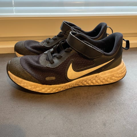 Nike lasten lenkkarit, koko 32. Väri musta valkoisilla yksityiskohdilla. Unisex-malli, jossa tarrakiinnitys ja joustonauhat helpottamassa pukemista. Päällinen verkkokangasta ja synteettistä materiaalia, pohja kumia. Soveltuvat arkeen ja liikuntaan lapsille.