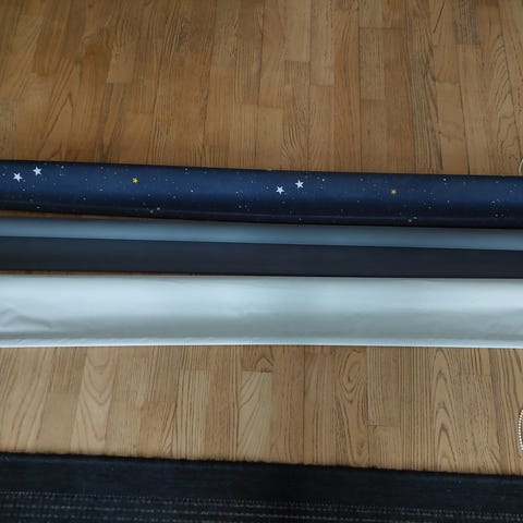 Käytössä ollut, hyväkuntoinen viininpunainen (?) pimennys rullaverho. Ja kiinnikkeet.