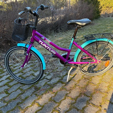 Tunturi lasten polkupyörä, 20" renkaat ja 3 vaihdetta. Pyörässä on jalkajarru ja edessä käsijarru.