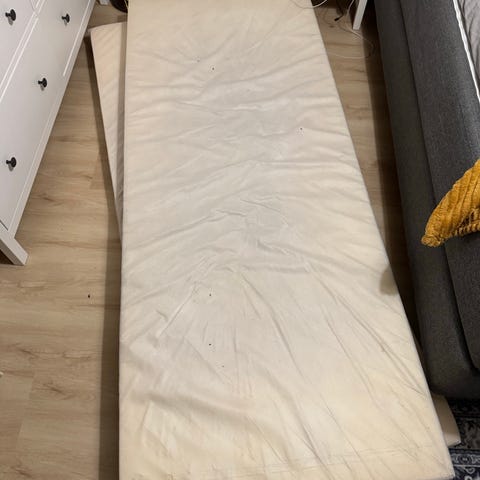 Pitkään käytössä ollut Karupin 120 cm comfort pehmeä futonpatja. Täytteenä puuvillaa ja ohut foam kerros. Rullattu, tuuletettu ja imuroitu säännöllisesti. Väri tumman vihreä. Vaihtoon uuden patjan tieltä.
