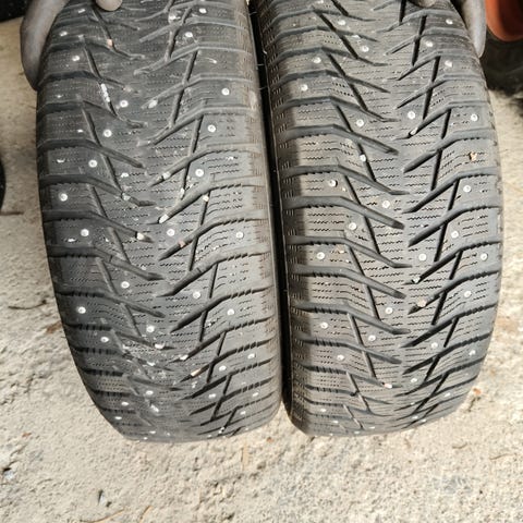 Nastat lentäneet mäkeen tai kuluneet pois. Tee vaikka helposti kesärenkaat. Pintaa hyvin 7-8mm