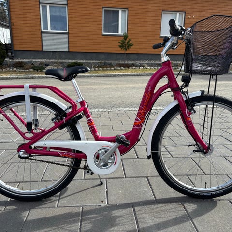 24-tuumainen Ortler Copenhagen tyttöjen polkupyörä. 3-vaihteinen. Kori pienille tavaroille ja tarakka. Edessä käsi- ja takana jalkajarru.