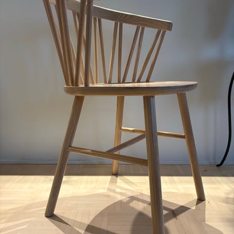 Tuolissa on taivutetusta puusta valmistettu kaareva runko, jota leikkaavat kauniin selkeät, puhtaat linjat ja ilmava muotoilu. Setti sisältää Josef Hoffmannin huonekaluille ominaisia avainelementtejä: rei’itetyt tikapuutyyliset selkänojat, sivutuet sekä leveät, tynnyrimäiset muodot. Tuolien ulkoasu on vaikuttava: kiiltävän mustat taivutetut puuosat luovat upean kontrastin istuinten ja selkänojien kanssa.