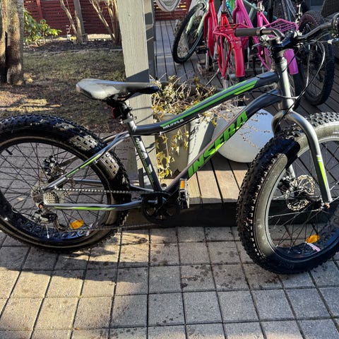 Hyvässä kunnossa oleva fatbike. Vähän ajettu ja sisävarastossa pidetty. Myydään pois varaston tyhjennyksen tieltä. Runkoko S/M (17 tuumaa). Erinomaiset jarrut ja helppo huollettava.