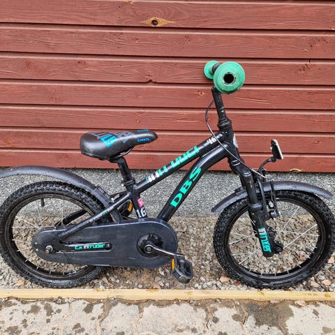 Nopsan 16" polkupyörä apupyörillä ja työntötangolla