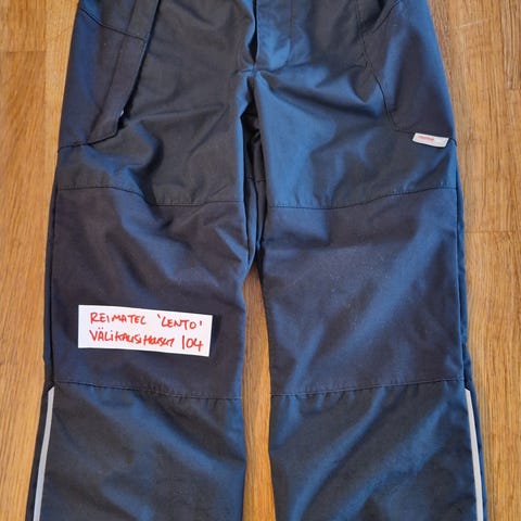 Myydään Reimatecin välikausihousut. Koko 104. Kunto hyvä, polvissa hieman kulumaa.