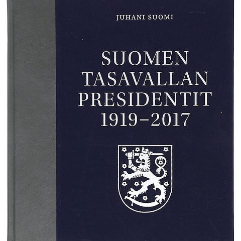 1) "Suomen tasavallan presidentit 1919–2017" on kovakantinen teos, jossa esitellään Suomen tasavallan presidentit vuosilta 1919–2017. Kirja on numeroitu osa 2500 kappaleen painoksesta.(Hinta antikvariaateissa yli 100 euroa. Nyt edullisesti 40 euroa, kannessa hieman kulumaa).