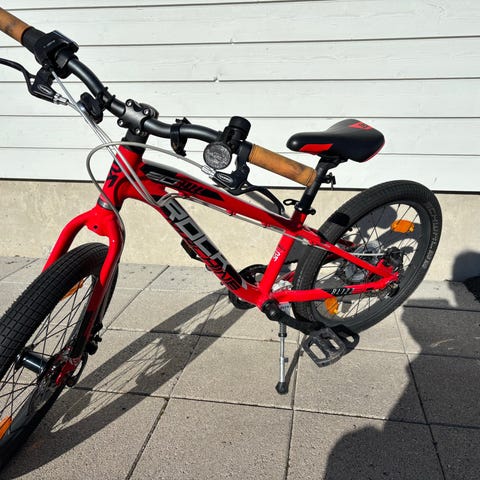 Rock Machine lasten polkupyörä, jossa 20" renkaat. Runkomateriaali on metallia ja väri punainen. Pyörässä on seitsemän vaihdetta. Jarrut ovat vaijerilla toimivat levyjarrut edessä ja takana. Pyörässä on lokasuoja edessä ja takana. Soveltuu 110-125 cm pitkälle lapselle. Säännöllisesti pesty ja huollettu. Renkaat hyväkuntoiset.