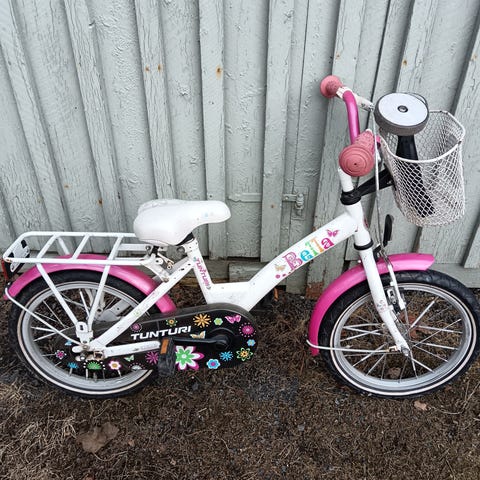 Polkupyörä, vaatii kunnostusta ja kevät huoltoa ennen ajoa. Huomioitu hinnassa. Mukaan apupyörät.