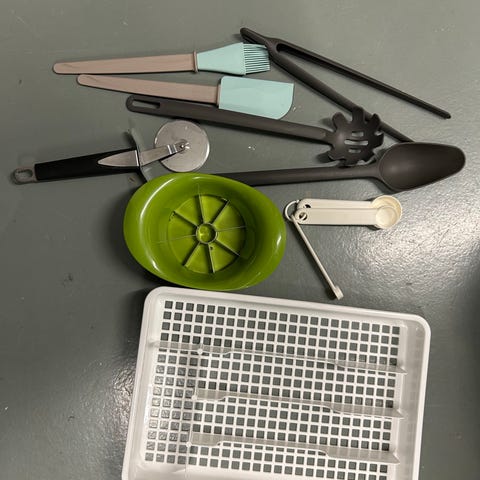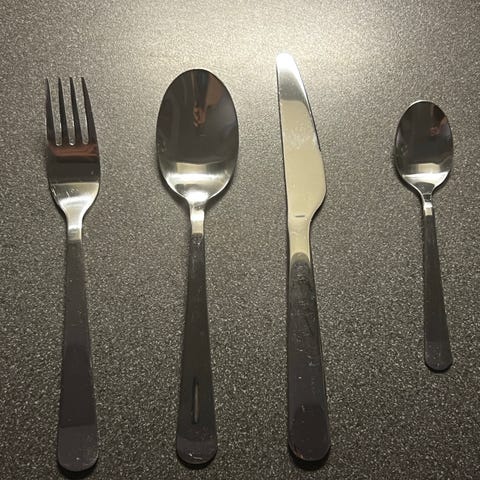 Ei ole Ikea lasten aterinsetti ja lasinaluset. sininen muovinen lusikka ja haarukka,