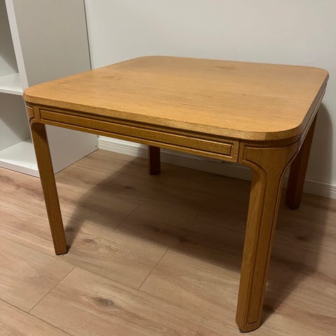 Koivunvärinen kokopuinen tukeva sohvapöytä, korkeus 52 cm. Kunto hyvä ja yleisilme siisti, kannessa 1 pieni virhe. Nouto Siltamäki, mobilepay tai käteinen. Savuton ja lemmikitön talous.