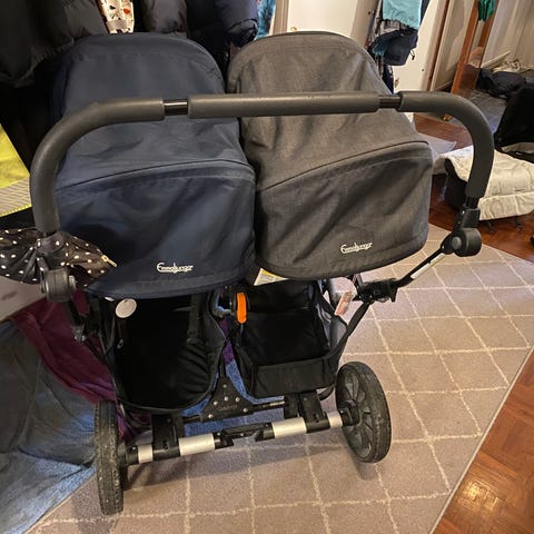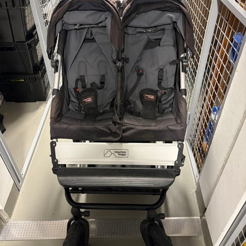 Mountain Buggy tuplarattaat sadesuojalla ja kantokopalla