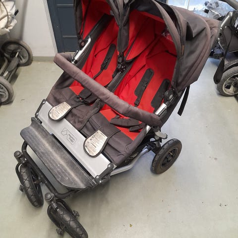 Mountain Buggy tuplarattaat kahdelle lapselle. Rattaissa on viisipistevaljaat molemmille istuimille ja erilliset selkänojat. Etupyörät ovat kääntyvät ja takana on jalkajarru. Runko on metallinen ja istuinosat kangasta, väriltään ruskeat. Sopivat käytettäväksi arjen kuljetuksiin ja ulkoiluun kahden lapsen kanssa.