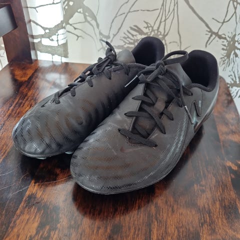 Nike Phantom jalkapallokengät nappulapohjalla. Päällinen on valkoinen, jossa punaisia ja mustia yksityiskohtia sekä keltaisia tehosteita. Kengät soveltuvat jalkapallon pelaamiseen tekonurmella. Ostettu pari vuotta sitten hetkellisen innostuksen vuoksi, mutta jääneet kaapin pohjalle lojumaan. Eli kuten kunnosta näkyy ovat erittäin siistit. Koko 38,5