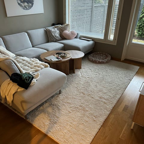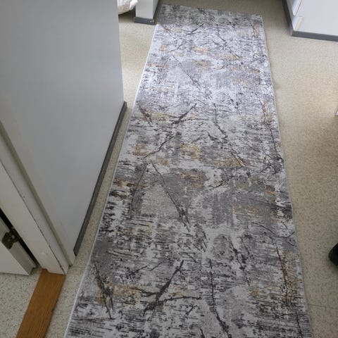 Pyyhitty useampaan otteeseen kostealla, maton pinnassa silti mustia viiruja.