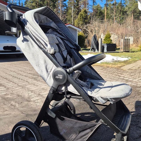 Britax Römer B-Agile R matkarattaat / kaupunkirattaat. Uutena ostettu, kahdella käytetty. Selkänojan saa kolmeen asentoon, kuomun saa laskettua useaan asentoon sekä mukiteline ja sadesuoja mukana. Värinä harmaameleerattu.