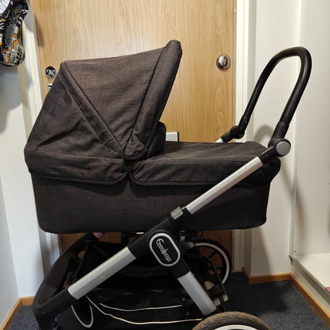 Ostettu v. 2022 Lastentarvikkeesta ja käytetty yhdellä lapsella. Hyväkuntoiset ja väritykseltään musta. Mukaan tulee sadesuoja ja ohjekirja.