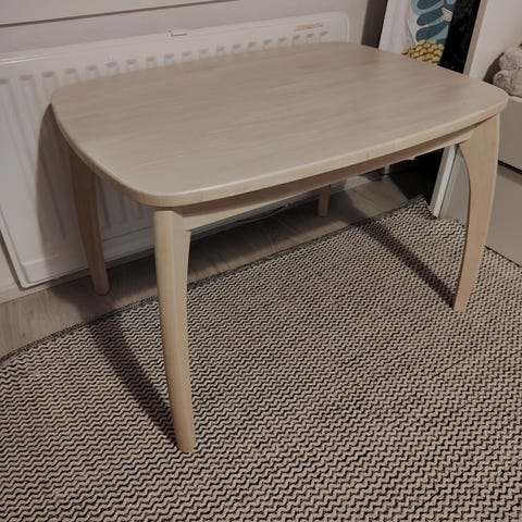 Pinnassa piirustusjälkiä jonkin verran. Tukeva pöytä.