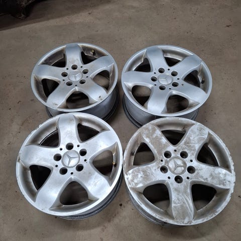 hyväkuntoiset 16tuumaiset vanteet nastarenkailla mersuun