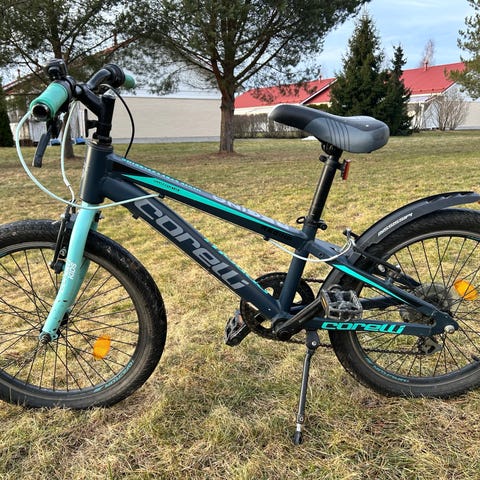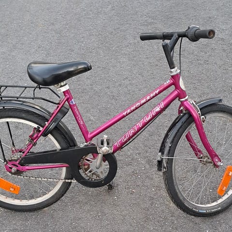 väri punainen, lokasuojat edessä ja takana sekä tavarateline takana.