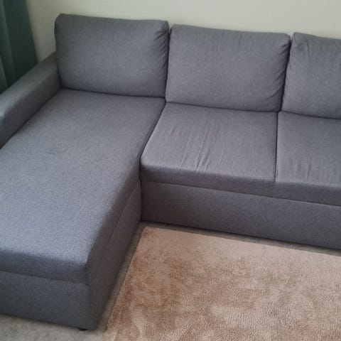 Koko 42cmx45cm, korkeus toisesta reunasta 28cm ja toisesta 33cm.