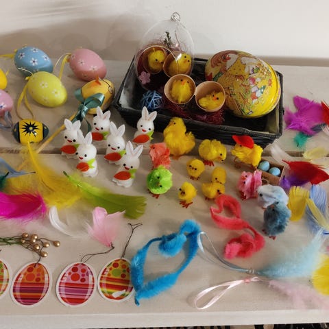 Iso pääsiäiskori värikkäät höyhenet virpomiskierrokselle 12€