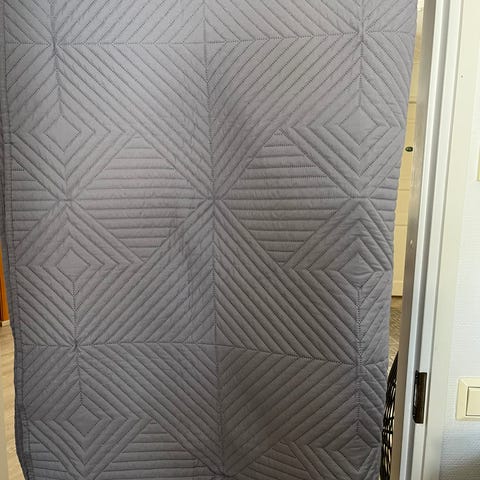Erittäin siistikuntoinen musta parisängyn päiväpeite. Ollut itsellä 160 cm leveässä jenkkisängyssä.