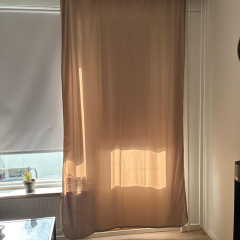 Myydään rypytysnauhallinen valkoinen verho. Läpikuultava ohut kangas. Siisti. Pituus 220cm.
