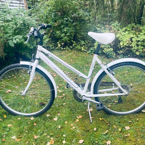 Raleigh kaupunkipyörä, unisex-malli. Rungon koko M ja 26" renkaat. Väriltään valkoinen. Pyörässä on matala runko helpottamaan kyytiin nousua. Varustettu takatavaratelineellä, lokasuojilla ja heijastimilla. Soveltuu yleiseen kaupunki- ja arkiajoon eri käyttäjille.