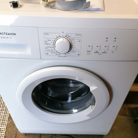 Tilavuus noin 6 kg. Ajastin ja 10 pesuohjelmaa.