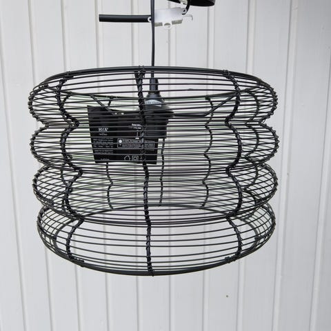 Brilliant -merkkinen kattovalaisin. Musta messinkisellä yksityiskohdalla. Sisältä valkoinen. Halkaisija 41cm. Näkyviin jäävän johdon pituus n. 78cm max.