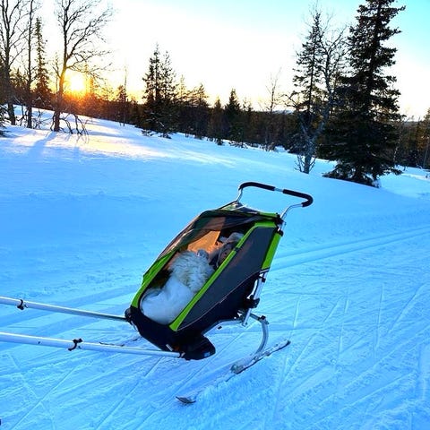 Thulen kahden istuttava pyöräilykärry/rattaat.