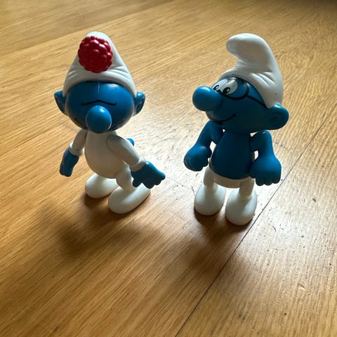 Smurffit muovinen figuuri ja suurennuslasi-lelu. Settiin kuuluu sininen smurffi-hahmo sekä erillinen vihreä muovinen suurennuslasi, jossa on jalusta. Sopii leikkeihin tai keräilyyn.