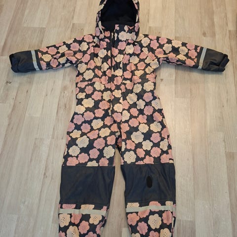 Myydään Jonathan-merkin lasten kurahaalari / sadehaalari, koko 110. Kuosina kirjava, pienikuvioinen kukkakuosi, pohjaväri pinkki. Haalarissa on ohut kangasvuori ja ehjät jalkalenksut. Peffassa huomasin kuvissa vähän tummentumaa, joka voi hyvin lähteä pesussakin (en ole turhaan viitsinyt pestä, mutta voin toki pestäkin ennen kauppoja).
