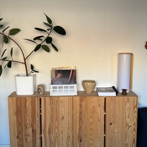 Vihreäksi (sävy t1406)maalattu Ivar kaappi. Maalausjäljessä ei kehumista, mutta ehjä ja toimiva kaappi. Tehty itse jalat kaapin pohjaan.