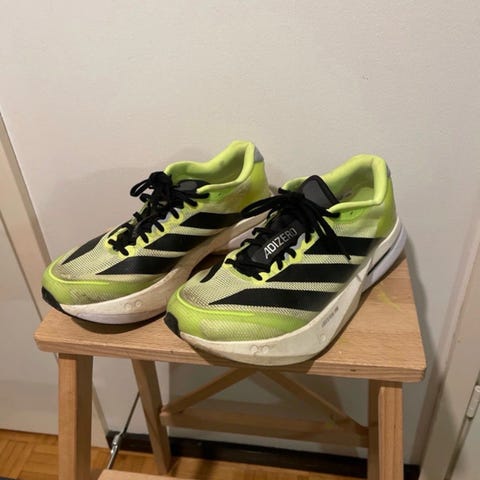 Myydään erittäin hyväkuntoiset adizero bostonit koossa 41 1/3. Juostu yksi alle 10 km lenkki ja todettu liian pieneksi.