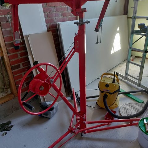 Levynasennuslaite, joka on tarkoitettu suurten ja painavien kipsilevyjen nostamiseen ja paikallaanpitämiseen.