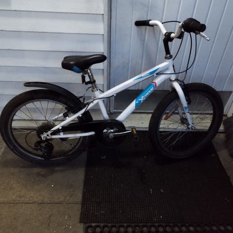 Pyörällä on 20" renkaat, joustokeula, 3 vaihdetta, jalkajarrut.