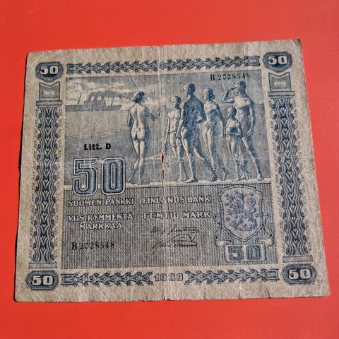 50 mk seteli vuodelta 1986, 5 €