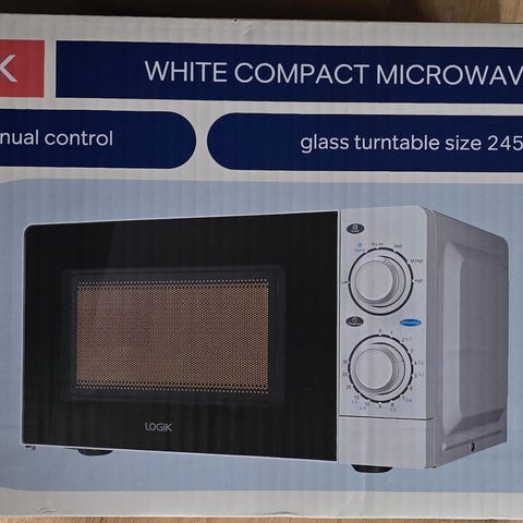 Logik mikroaaltouuni valkoinen. Vapaasti pöydälle asetettava malli mekaanisilla säätimillä. Laitteessa on kääntyvä lasinen lautanen ja sisävalo. Erittäin vähällä käytöllä kakkoskodissa ollut laite. Mikrokupu kaupan päälle.
