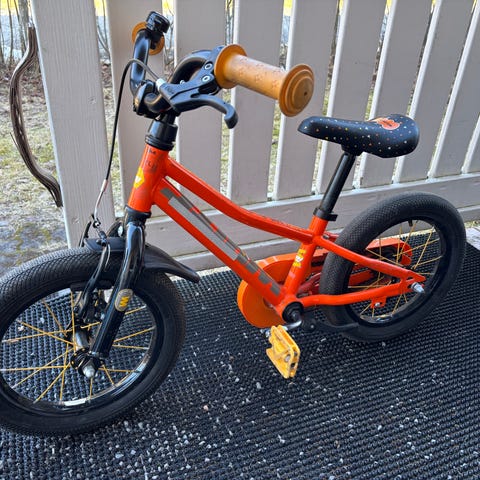 Uutena ostettu, jäi vähälle käytölle, apupyöristä jäi pieni naarmu takahaarukoihin. Muuten ihan siisti.