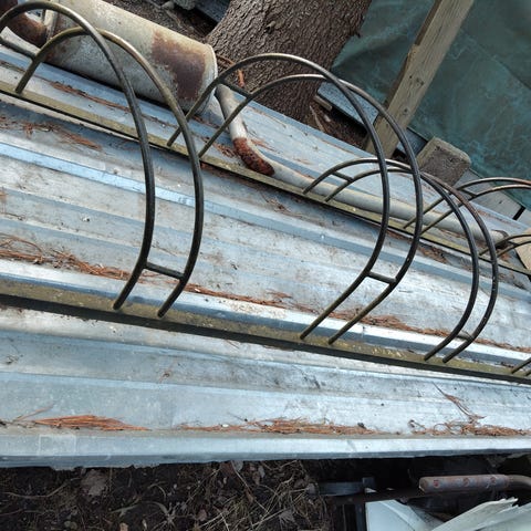 Myydään hyväkuntoinen 5-paikkainen pyöräteline, sinkitty, leveys n. 165 cm. Vain nouto.