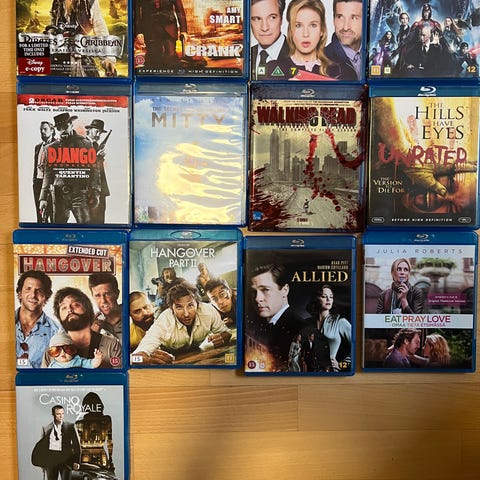 Sekalainen elokuva-dvd-kokoelma. Paketissa useita eri elokuvia eri genreistä, kuten toiminta, draama, komedia ja jännitys. Levyt ovat tavallisia dvd-levyjä koteloineen. Sopii esimerkiksi kokoelman täydentämiseen tai katsottavaksi dvd-soittimella. 1€/kpl tai 40€ koko setti.