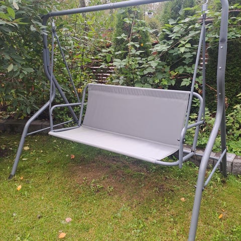 Myydään ehkä ja siro puutarhakeinu. Katoksen saa mukaan halutessaan, kankaassa reikä.