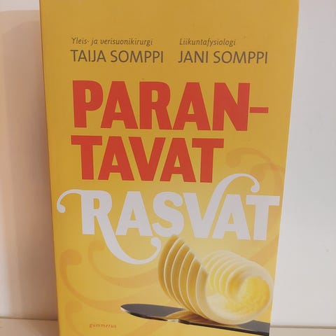 Myydään kirja Parantavat rasvat. Taija Somppi & Jani Somppi. Gummerus 2017. Pehmeäkantinen, ei merkintöjä.