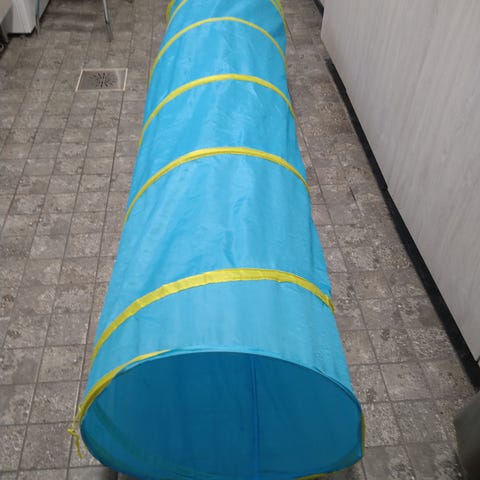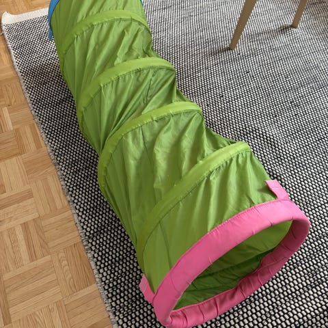 IKEA leikkitunneli lapsille. Vihreä tunneli, jossa moniväriset reunat. Tunneli on pehmeää kangasmateriaalia ja sen voi taittaa kasaan säilytystä varten. Soveltuu lasten leikkeihin ja motoriikan harjoitteluun sisätiloissa.