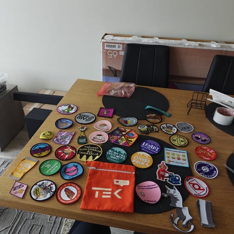 Siitä lähtis kasa halaarimerkkejä. Noin 180 kappaletta. On vanhoja tapahtumamerkkejä joille en kauheasti arvoa laske mutta myös "käyttökelpoisia" kunnon merkkejä.