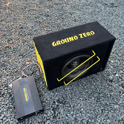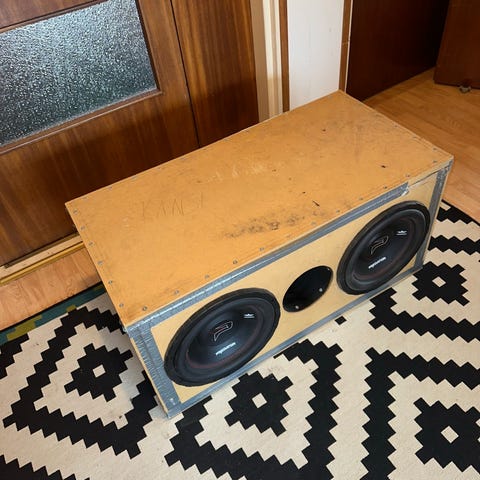 Vähän käytetty pioneerin subbari pienessä tehdastekoisessa kotelossa.